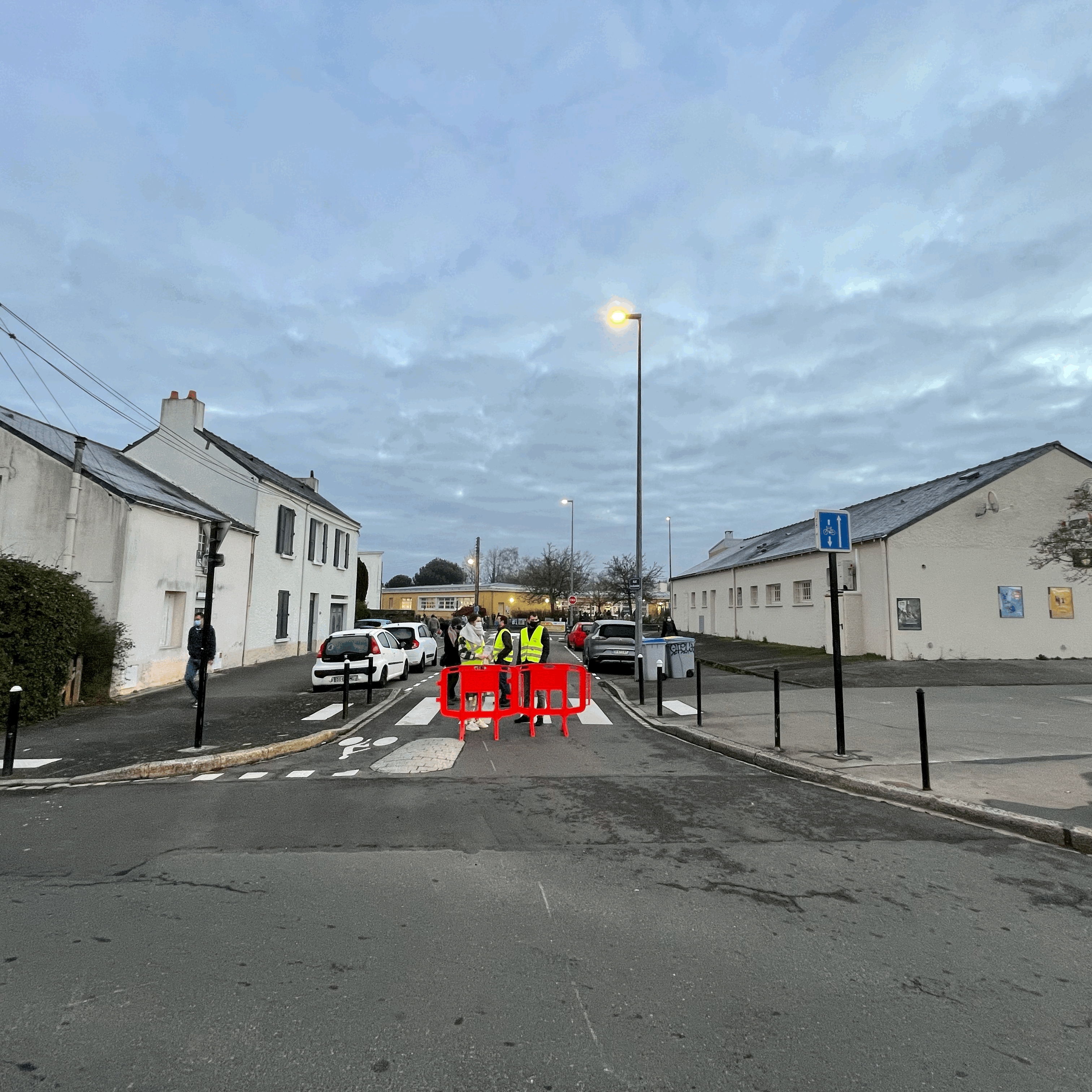 Cette rue n’est pas fermée, non. Elle est juste interdite aux voitures pour s’ouvrir à la vie quelques dizaines de minutes par jour, par la magie d’une simple barrière en plastique fluo. Impossible ici de couper la circulation automobile définitivement, alors on joue sur les temps, et celui-ci est pleinement consacré aux enfants. On vient comme on veut, mais si c’est en voiture alors on se gare un peu plus loin pour finir le chemin à pied.